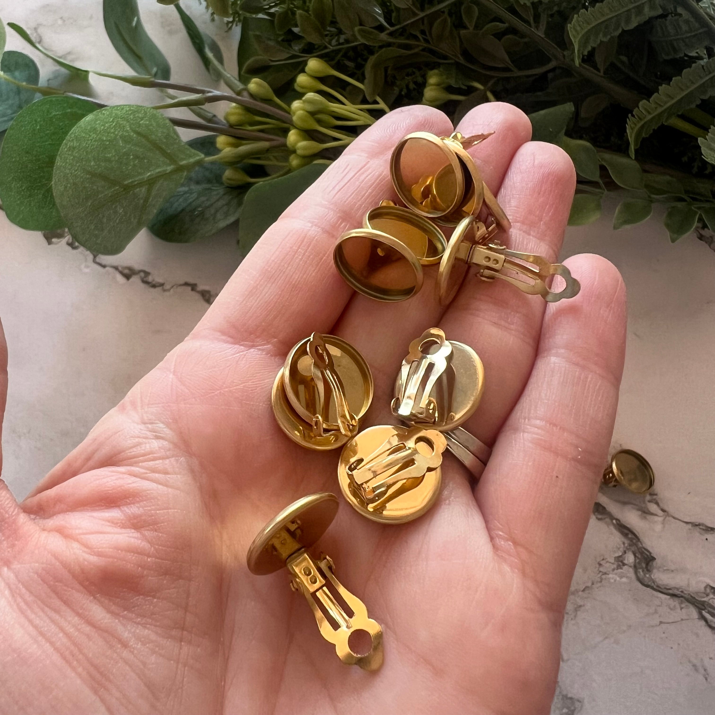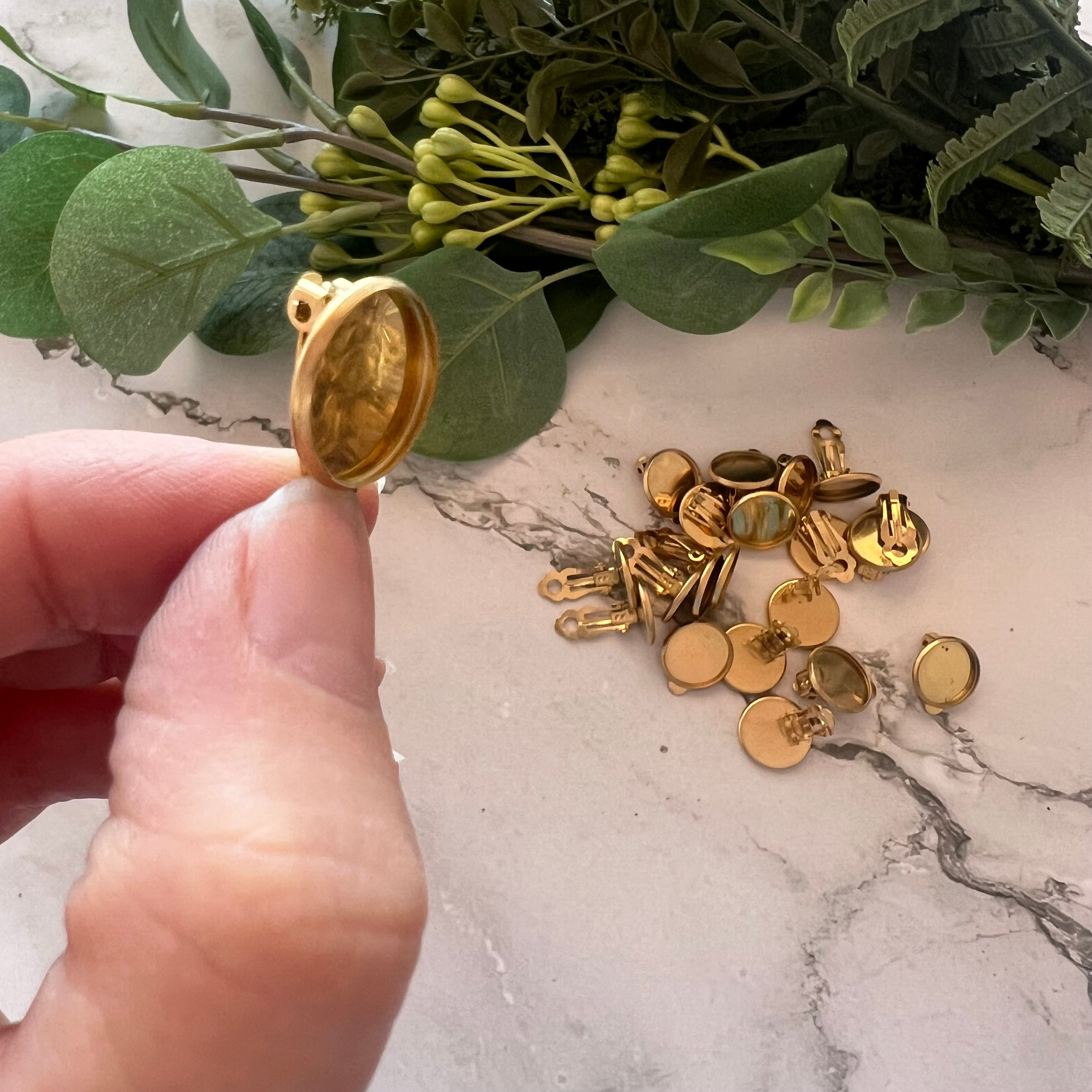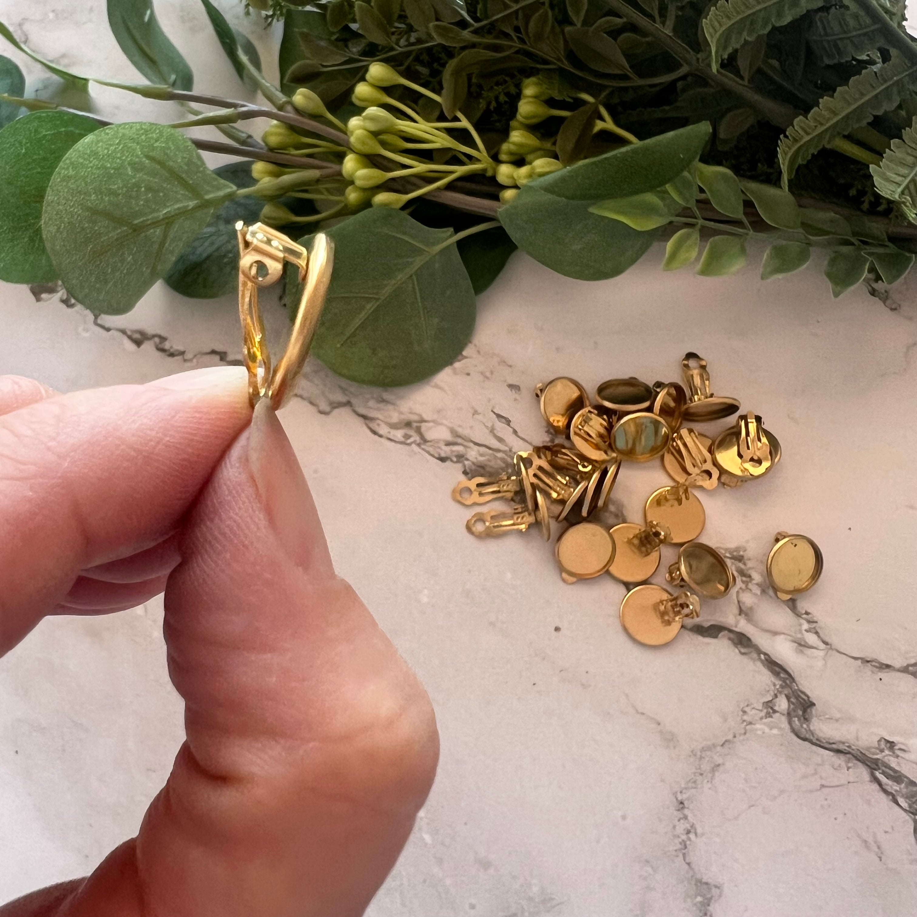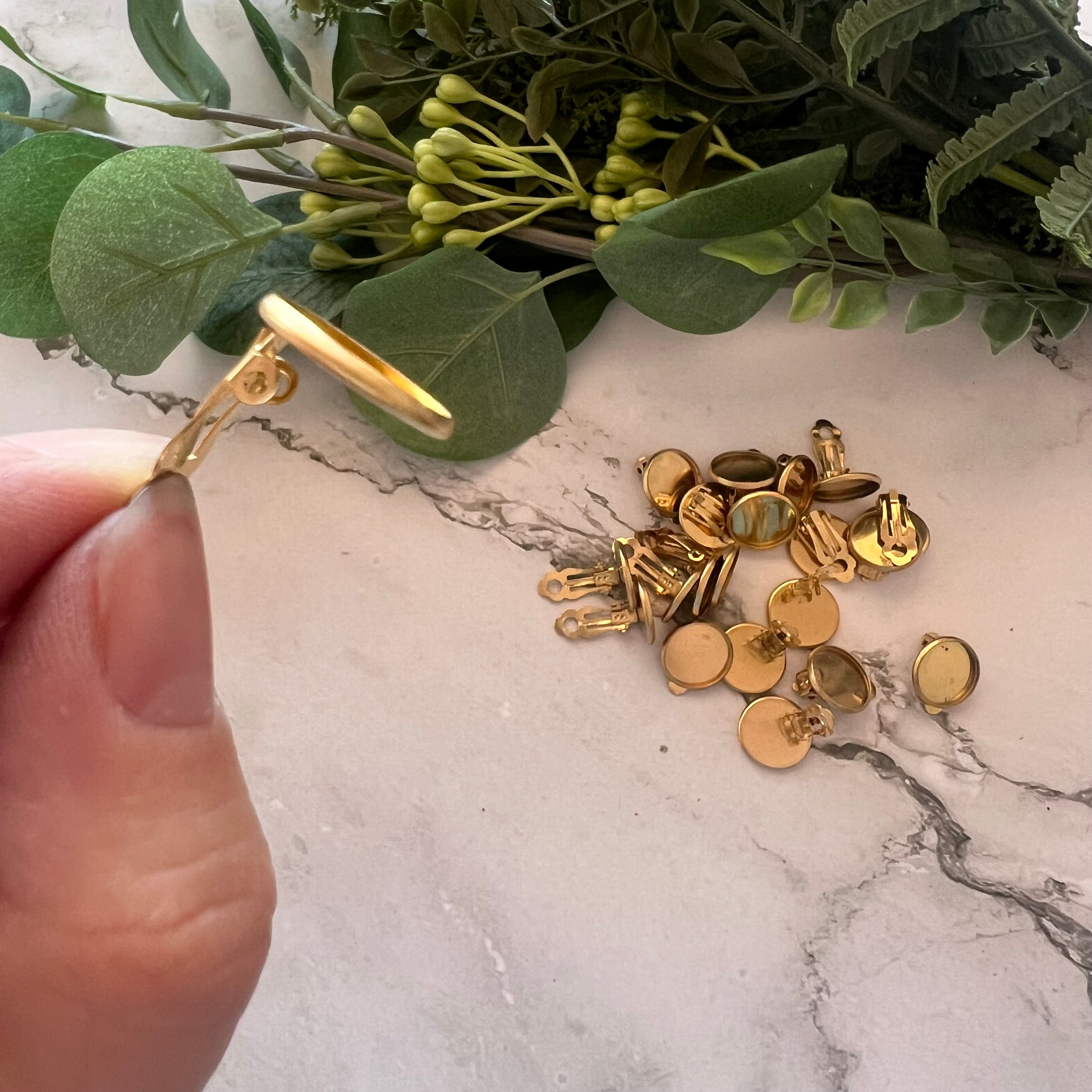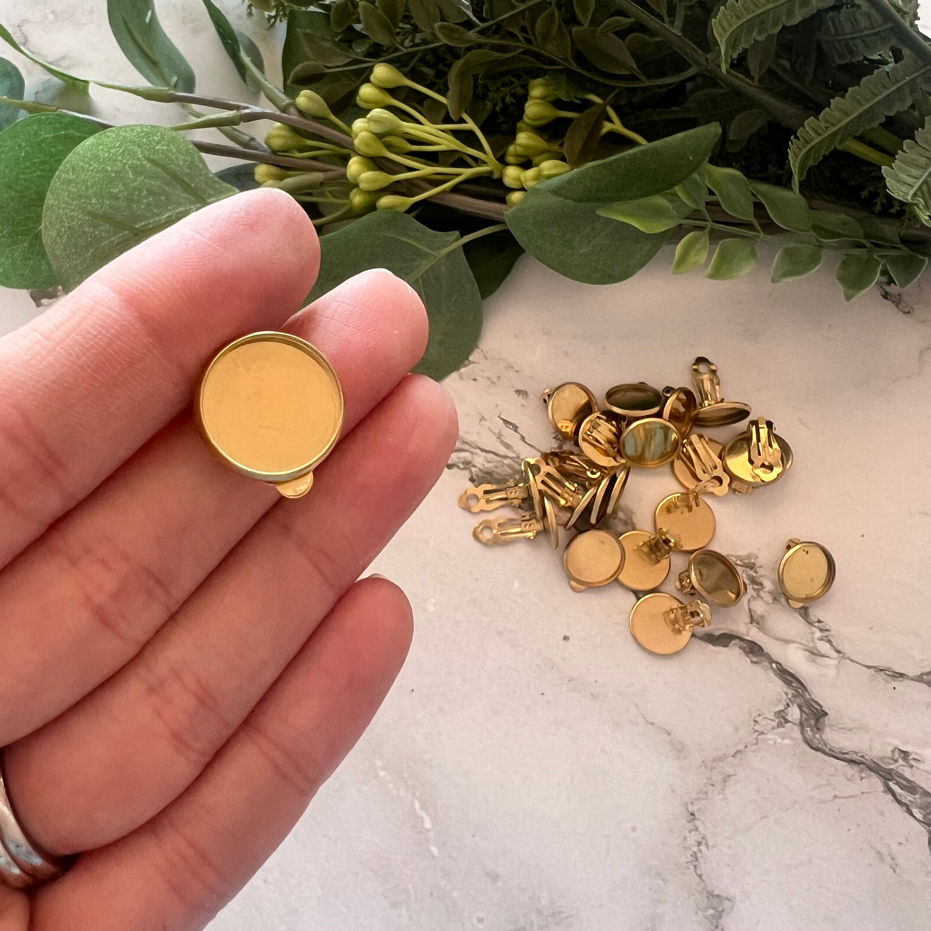 Our Minimalist Bezel Clip-on Earrings are a quick and easy way to create beautiful clip-on stud earrings. Made with Stainless Steel (304), they are gold plated and measure approximately 14mm.