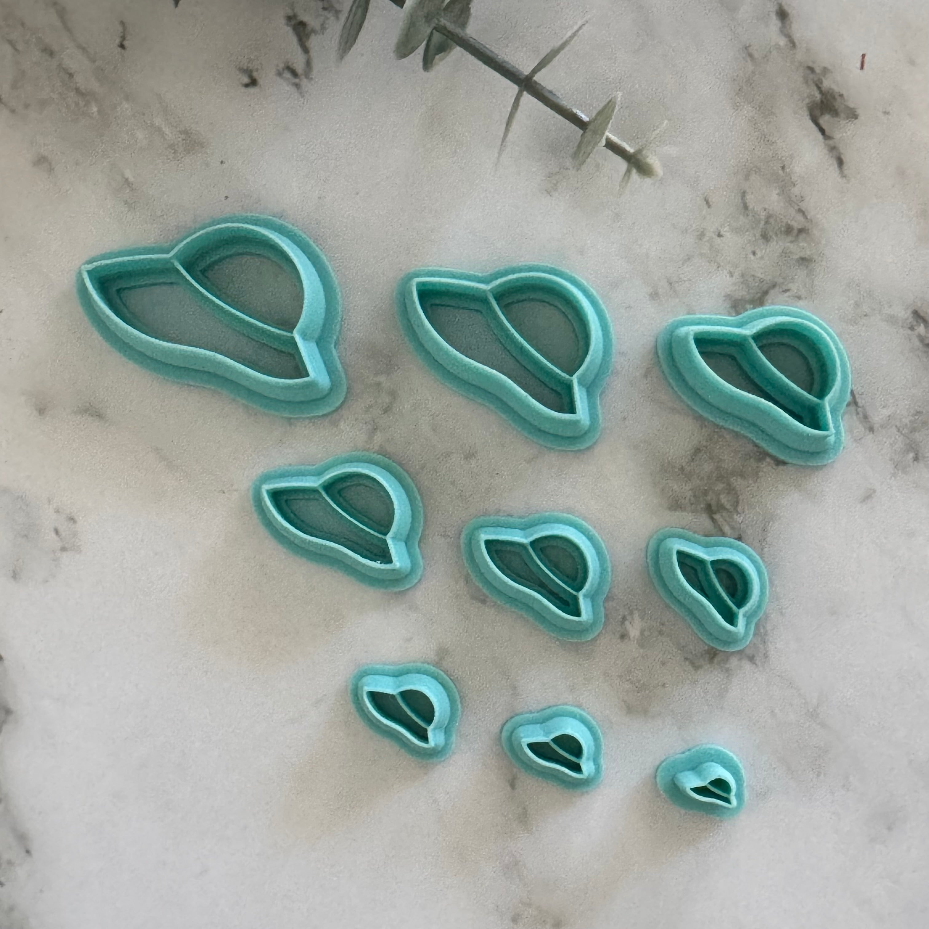 These are available in 9 different sizes that can be purchased separately, mirrored or as a full set. Sizes are measured across the longest/widest part of the cutter. Please see pictures that provide a visual of the measurements: