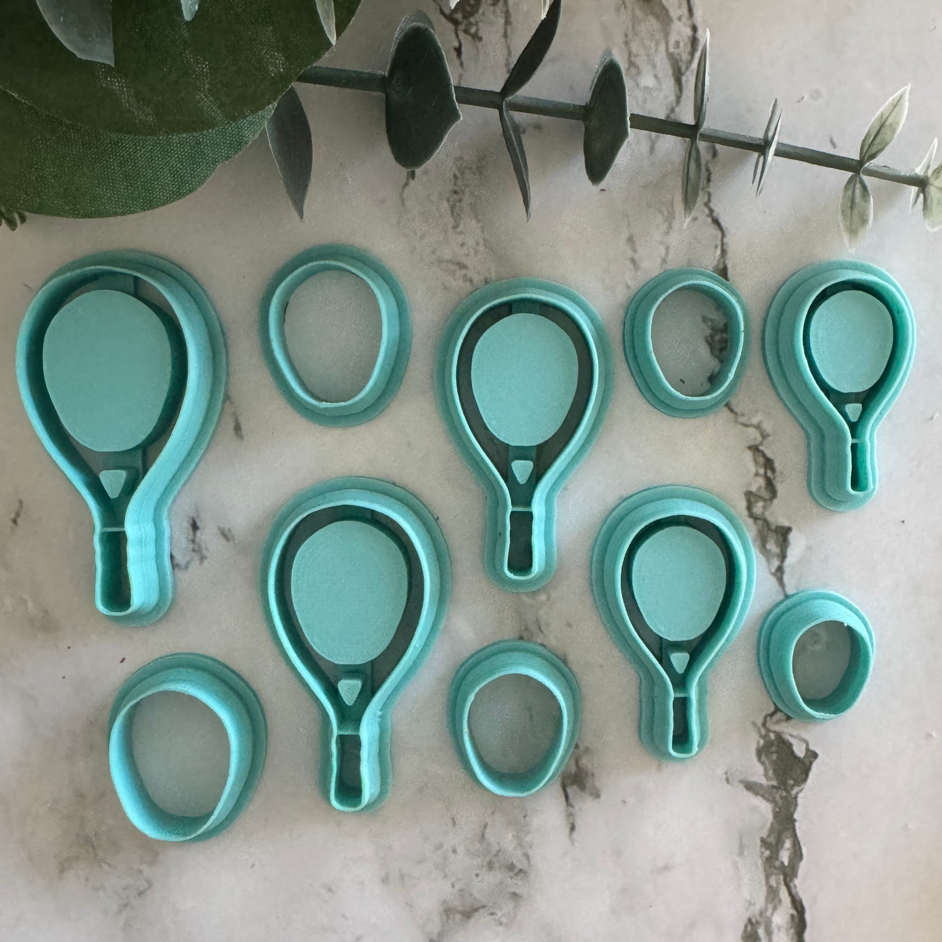 Available in 5 different sizes, our Tennis Racket cutter set includes two cutters, one for the racket, and one for the inside of the racket. Sizes are measured across the longest/widest part of the cutter. Please see pictures that provide a visual of the measurements: