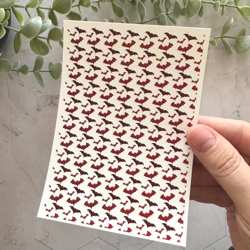 This Spooky Bats Large Water Soluble Transfer is designed to be used with polymer clay. It is perfect for adding a Halloween pattern to your earrings and other creations.