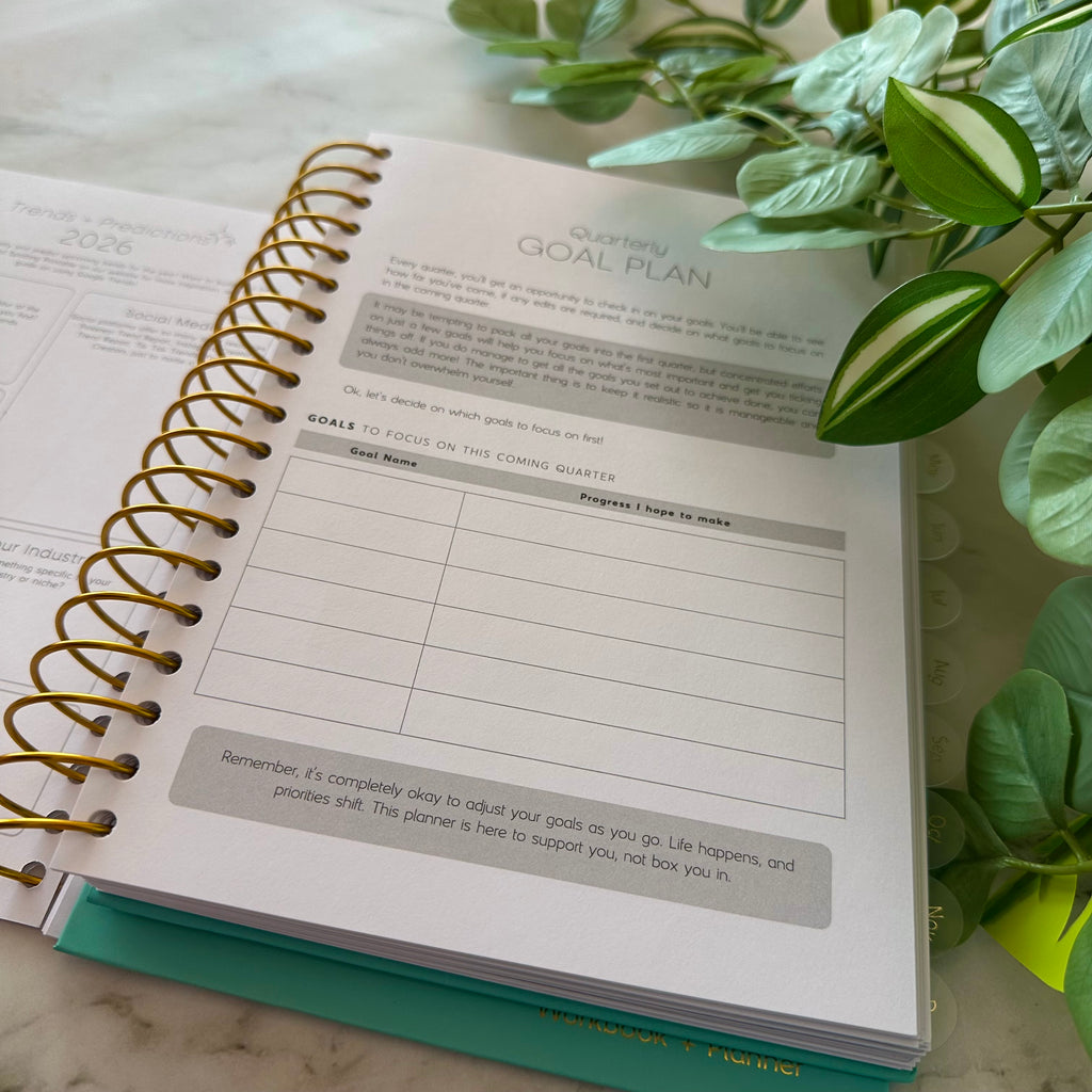 Despite these minor flaws, the heart of our planner is exactly what it should be. Inside you’ll still find every tool, prompt, and planning page designed to help you as a small business owner stay organised, motivated, and on track for an amazing year.