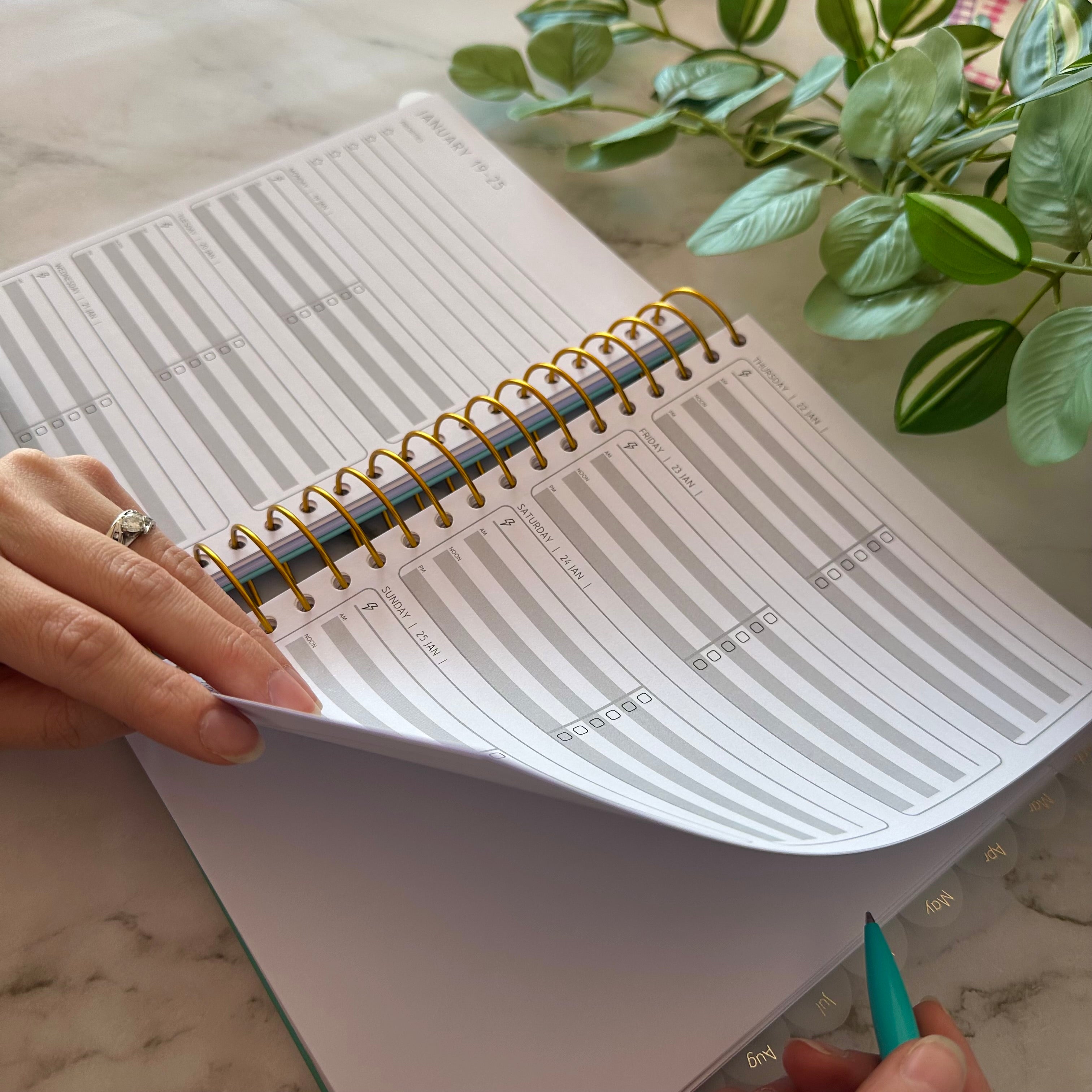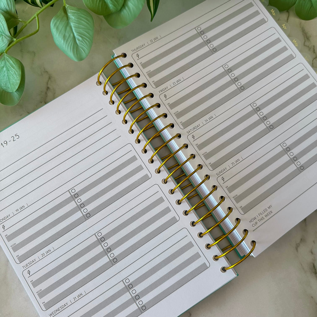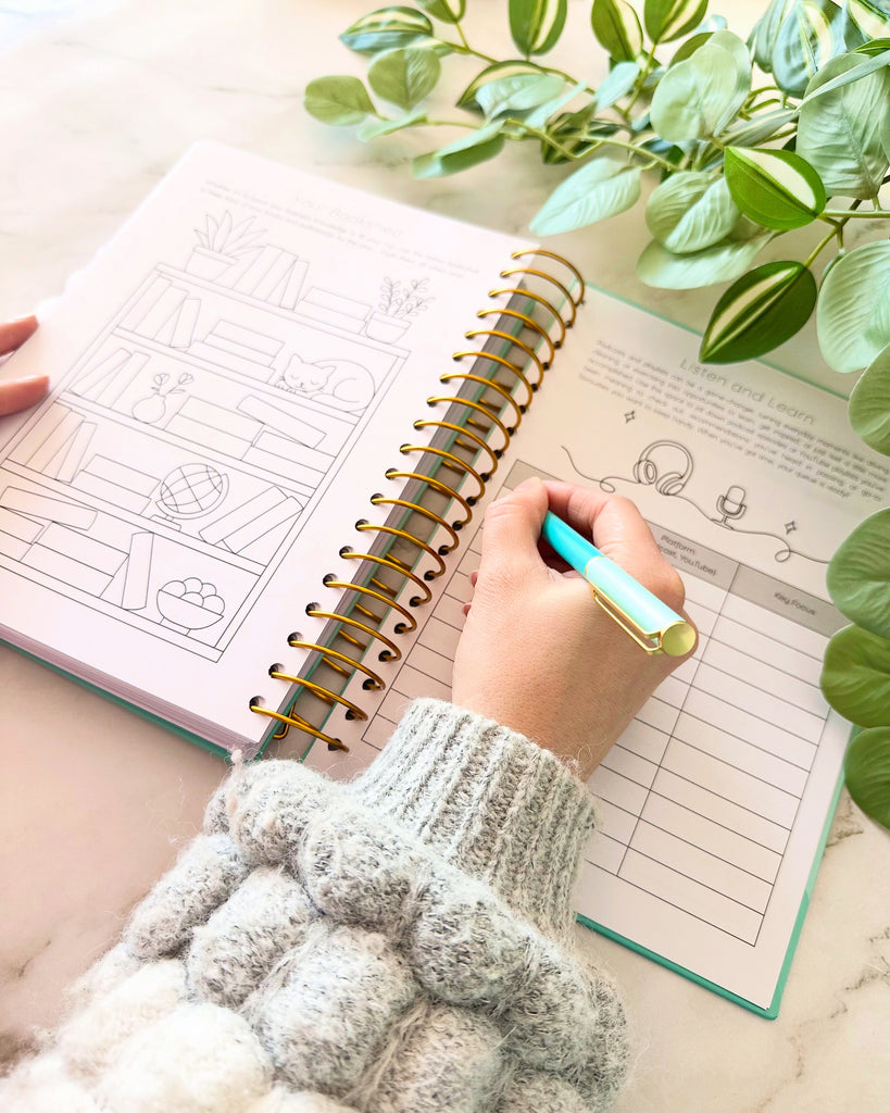 Its minimalist design allows you to keep your planner clean and streamlined, or add your own personality and creative flair with stickers, doodles, or bursts of colour. With clear layouts and structured prompts, it makes it easy to break down big goals into manageable steps and keep moving forward consistently.