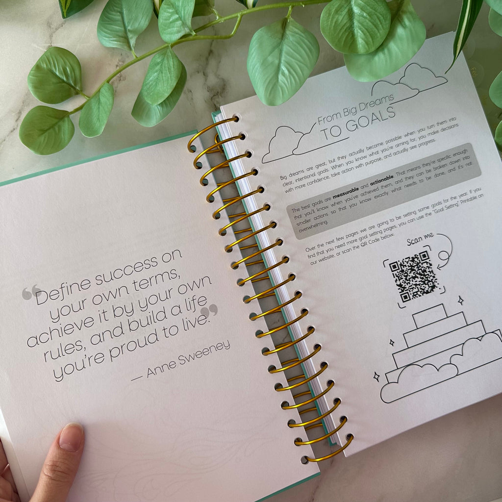 Goal-setting pages and regular prompts that keep your intentions front of mind all year long.