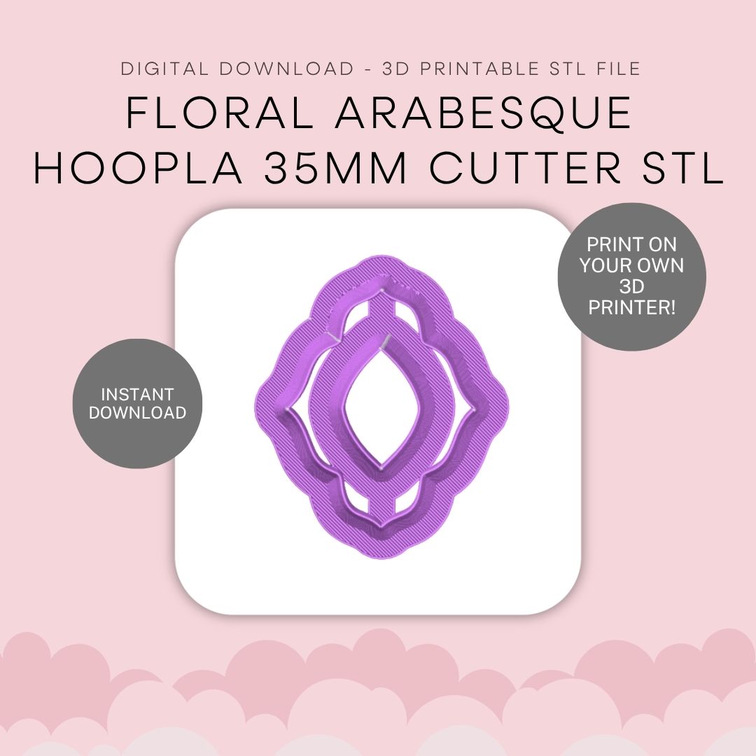 Our Floral Arabesque 35mm Cutter STL is designed for use with polymer clay. This cutter file is perfect for 3D printing on your own home 3D printer or maker space/library, and using to create your own polymer clay earrings and other handmade products.
